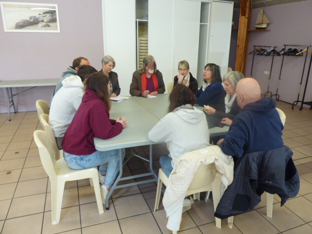 de gauche à droite : Jean-Claude LE FLOCH – Loïc TISSERAND – Jean-Luc GOC – Armelle COL – Mathilde LAROSE – Gwénola CAIJO – Chantal LE CLAINCHE – Annick MORAND – Ronan LE ROUX – Géraldine BELLEC – (membres sortants)