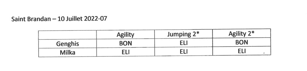 10 Juillet 2022 – Saint Brandan (22) – organisé par Saint Brandan Sport Canin – Juge : Birgit Hommerit